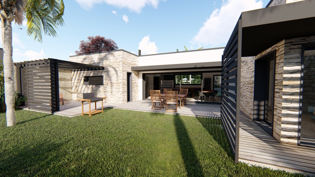 Maison réalisée en collaboration avec le Maitre d’oeuvre Sylvain David à Port-Louis.